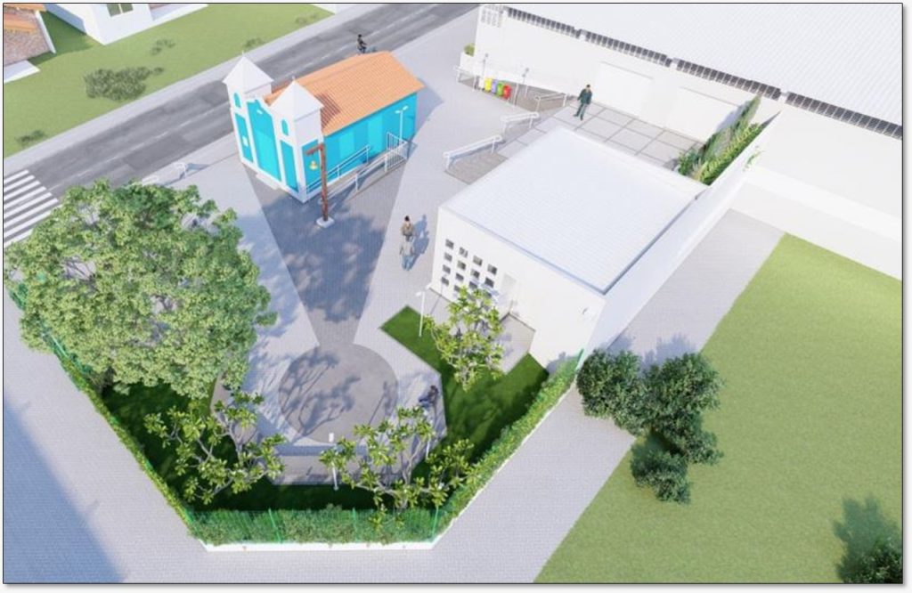 A revitalização também prevê a implantação de um espaço educacional para a comunidade, depósito de material de limpeza, banheiro acessível e um Centro de Atendimento ao Turista (CAT), fortalecendo o turismo cultural e a geração de oportunidades. Áreas verdes, uma praça de convivência e melhorias urbanísticas vão integrar o espaço, respeitando inclusive o acesso dos moradores que residem ao fundo do terreno da comunidade, com a melhoria do trecho que leva as residências.