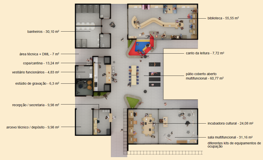 O secretário de Infraestrutura e Logística, Guilherme Alcântara, destaca que os projetos foram pensados para unir qualidade técnica e impacto social. “Estamos falando de estruturas modernas, com cerca de 373 metros quadrados de área construída, que vão oferecer biblioteca, estúdio de gravação, espaço para oficinas e apresentações. É um investimento que fortalece a cidadania e cria oportunidades, principalmente para crianças e jovens”, pontua.