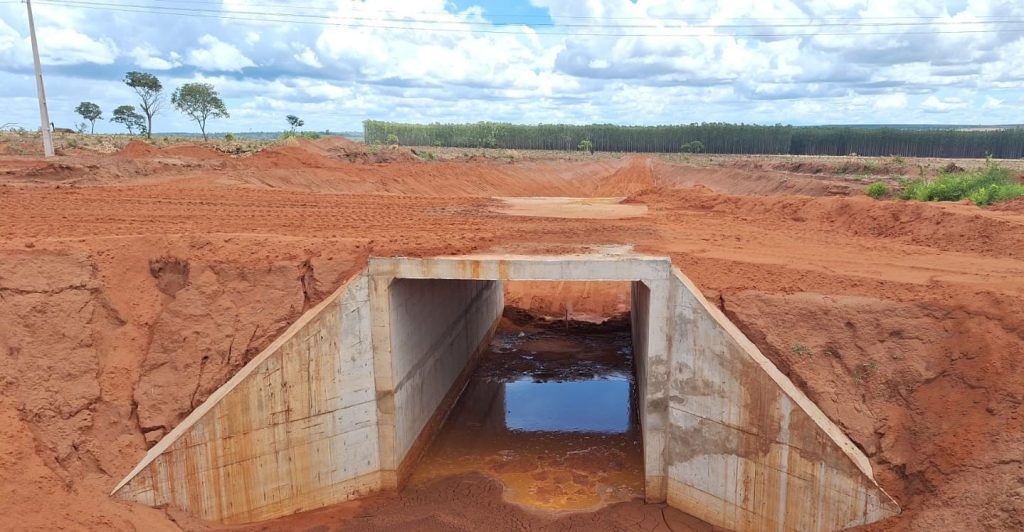 Um dos pontos escolhidos para a vistoria na MS-338 foi uma das duas trincheiras por onde vão passar caminhões hexatrens, que possuem seis carretas engatadas. Esses veículos gigantes não vão circular pelas rodovias, mas sim pelos caminhos de serviço das fazendas da empresa Suzano, que está construindo uma mega fábrica de celulose em Ribas. Esses caminhos de serviço vão cruzar por baixo a rodovia estadual, permitindo o transporte de madeira das fazendas até a fábrica na BR-262.